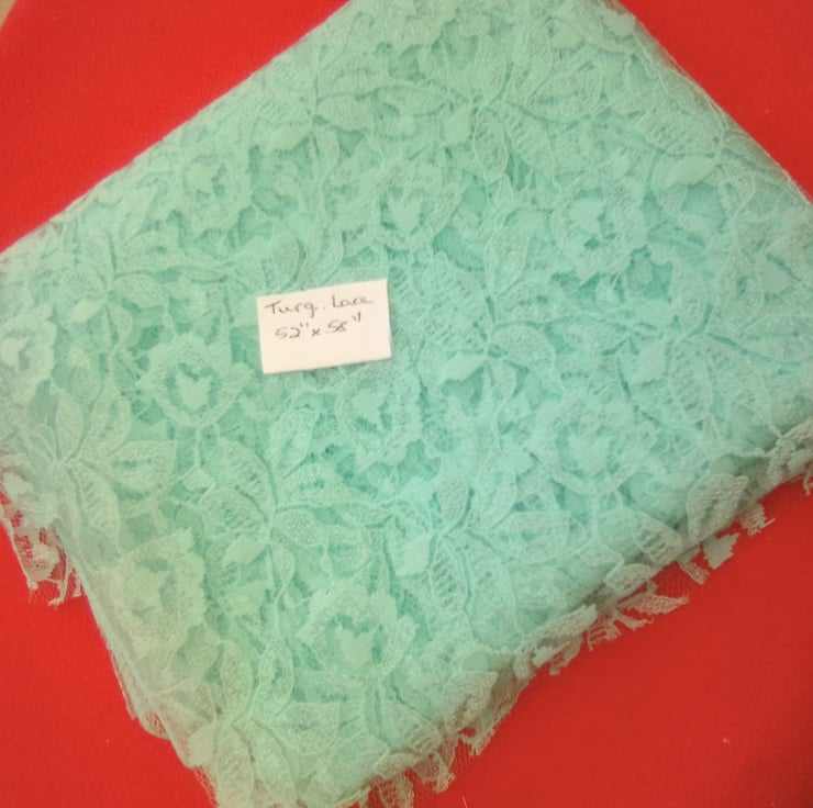 Piece of Vintage Turquoise Lace Fabric, Craft Supplies, Lace Remnant