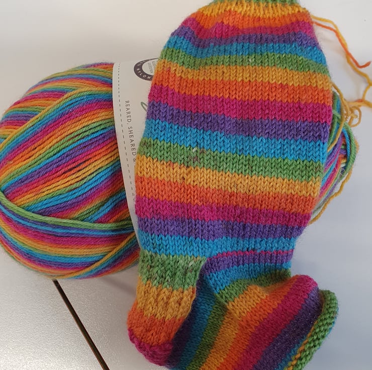 These socks are knitted with a specially produced sock yarn, 75% wool and 25% Polyamide to give strength to the yarn.