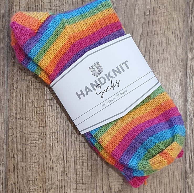 Hand knitted Boot Socks. Size 4-6. Rainbow Stripe