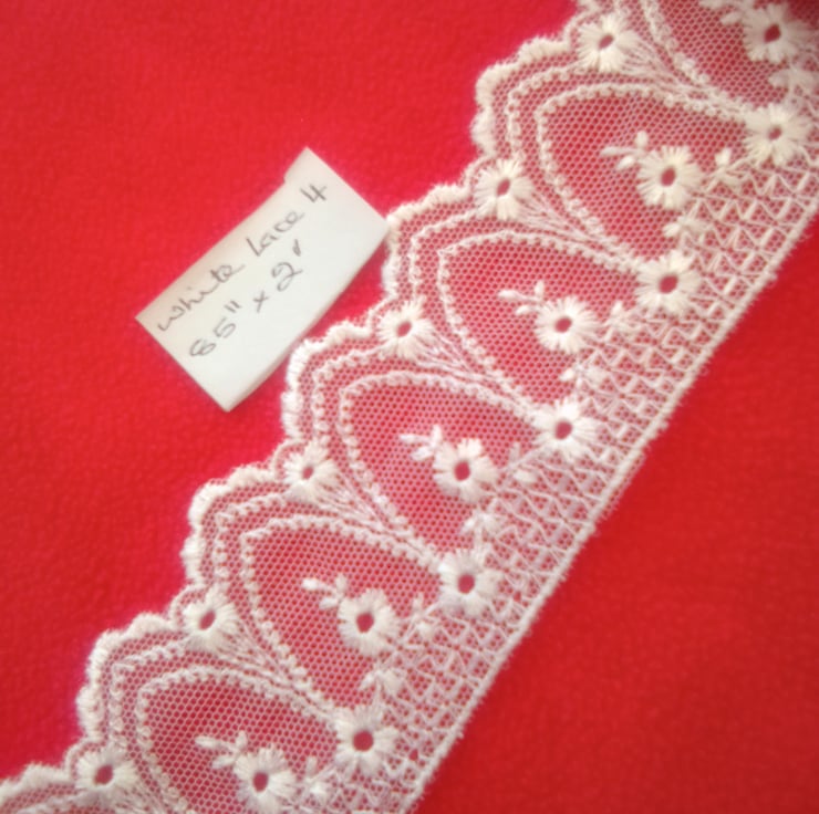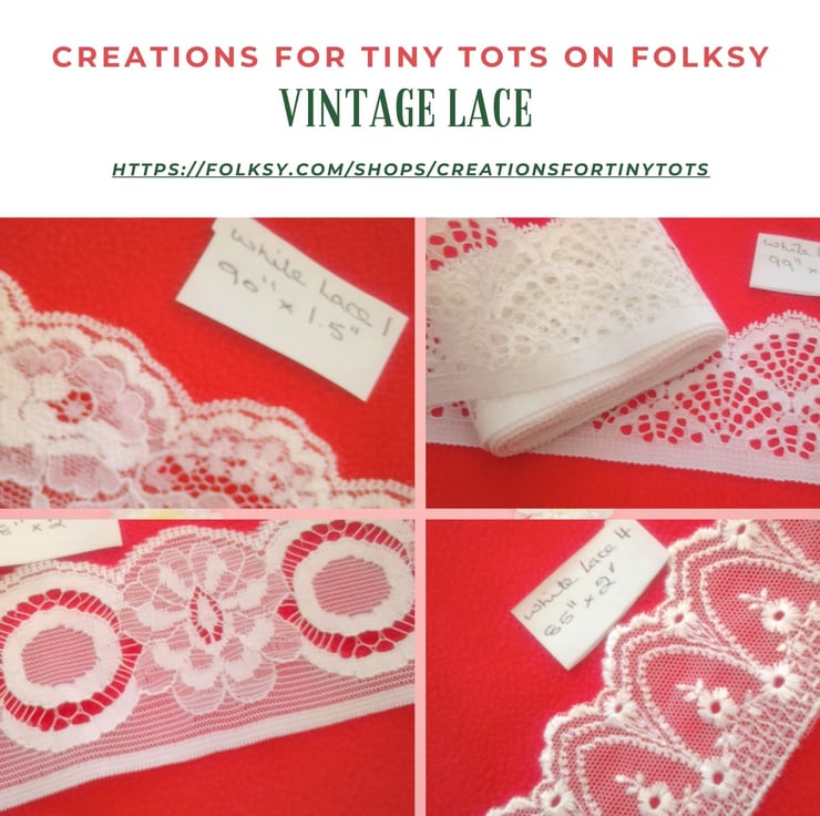 This listing is for 4 different strips of pretty white vintage lace trim, perfect for crafting projects.