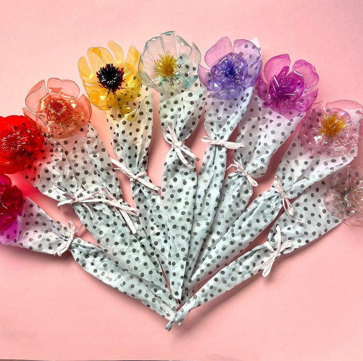 Recycled flowers handmade with love from used plastic bottles, a unique and eco-conscious gift!