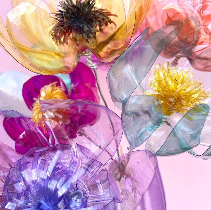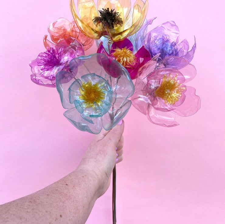 This is the ultimate happy bouquet, 8 recycled flowers handmade with love from used plastic bottles, a unique and eco-conscious gift!