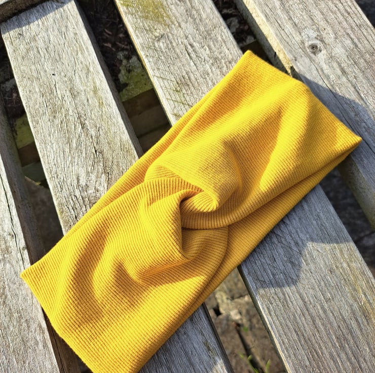 Created in a stunning mustard jersey stretch fabric with rib detail. Keep your hair out of your face while exercising, putting your make up on a night on the town or show it off as every day use simply because you can and it looks fab!