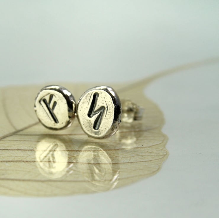 Silver Rune Studs Rustic Nugget Earrings on Posts Choose your Viking Rune