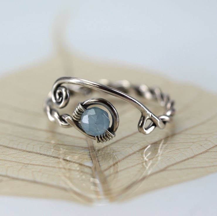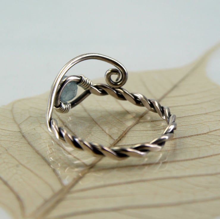 The shank is twisted from one wire and in the loop at the end is nestled a round faceted aquamarine bead. This version is milky which highlights the colour wonderfully and reminds me of frozen lakes and ice skating.