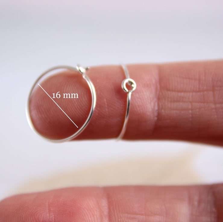 The hoops measure 16-17 mm in diameter. The listing is for one pair.