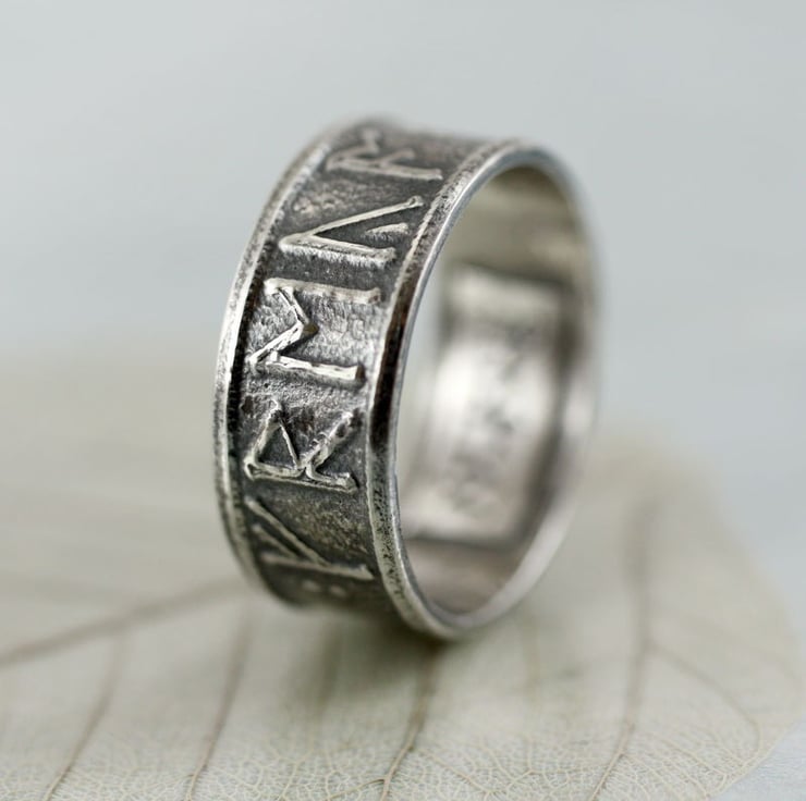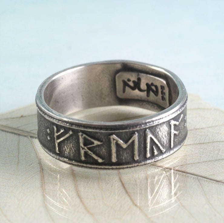 After much demand I have designed a ring on which you can choose your own inscription. The one in the first photo spells Freya - the name of the Norse goddess for love, beauty and fertility.