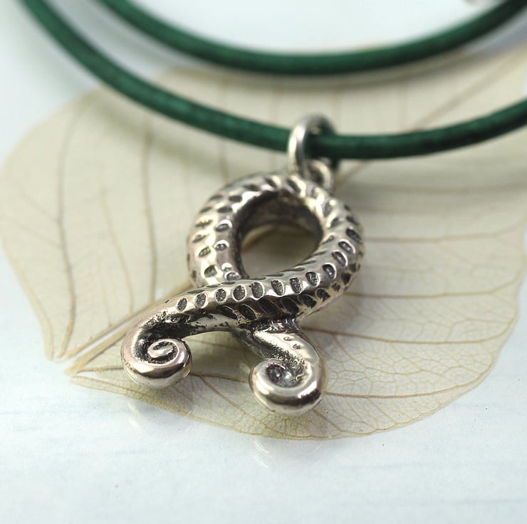 The pendant looks great on a leather necklace and comes with a 18" black one with silver ends and a silver clasp. If you want a different length I'd be happy to make a new one.