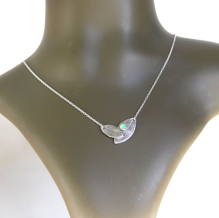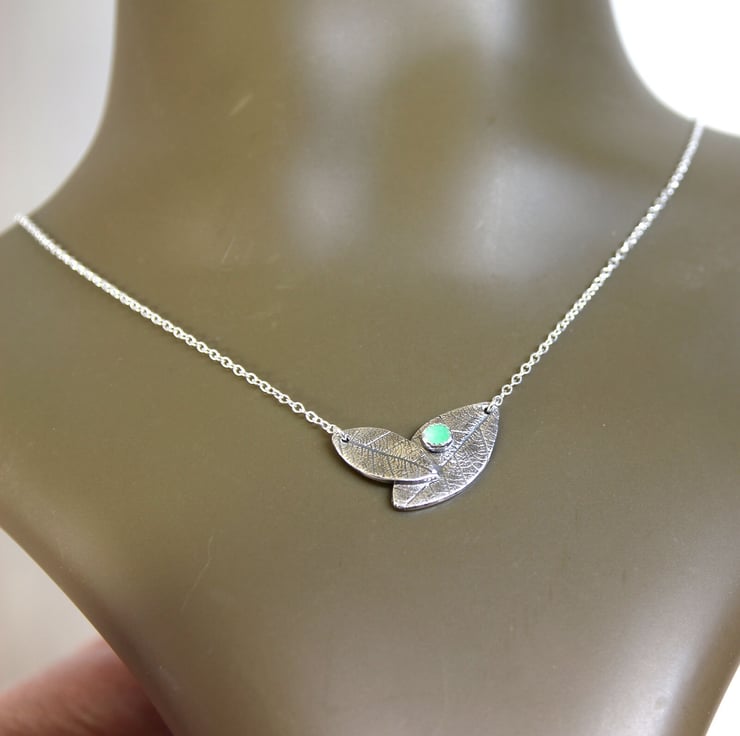 Sterling silver leaf necklace hand formed from a skeleton leaf impression.