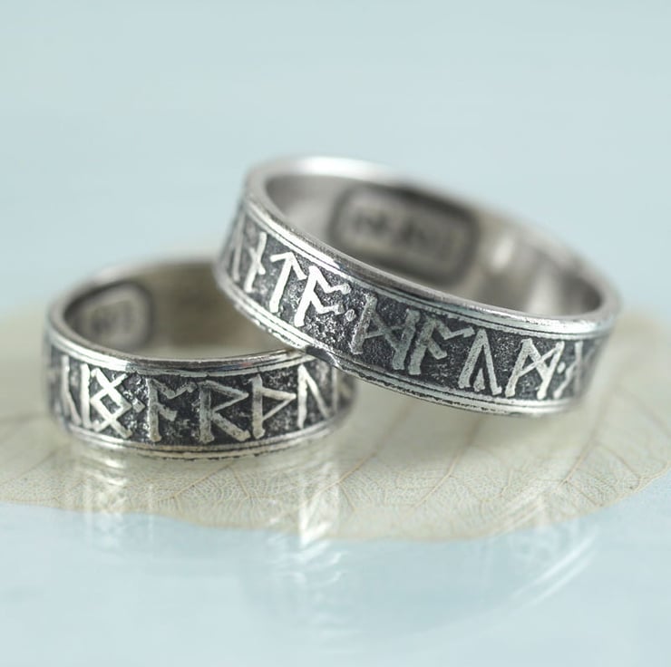 The actual translated text can be seen in the last picture - Each ring gets a fragment of a line - how much depends on the rings size. While I like that the text has significance and gives a nod to an old favourite legend of mine, the rings aren't meant to be 'read' as such - I just love the look of the old runes.