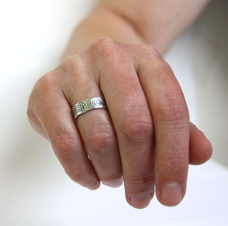 The actual translated text can be seen in the last picture - Each ring gets a fragment of a line - how much depends on the rings size. While I like that the text has significance and gives a nod to an old favourite legend of mine, the rings aren't meant to be 'read' as such - I just love the look of the old runes.
