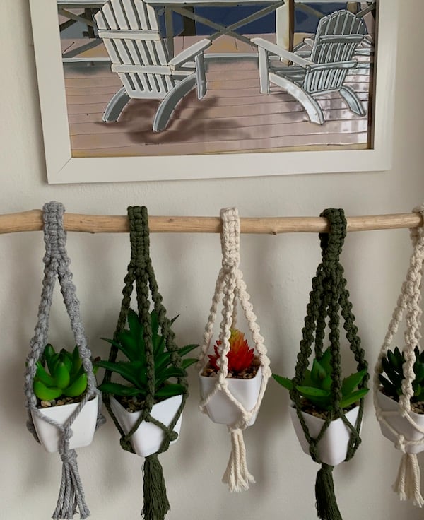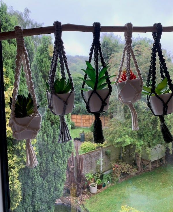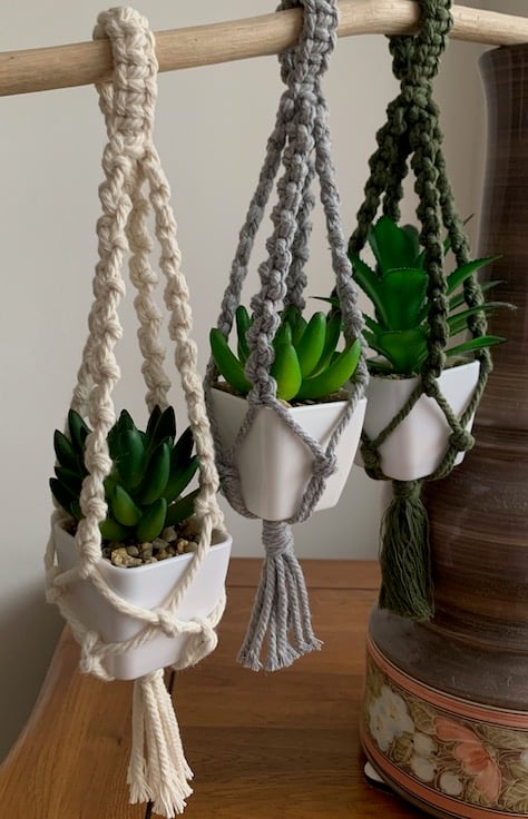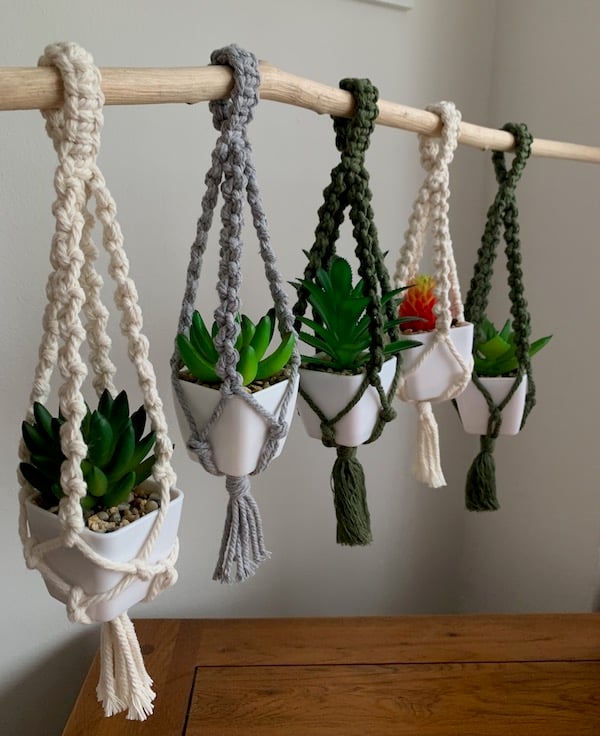 Delightful miniature macrame plant hangers. These are ideal for hanging small succulents, cacti or air plants.