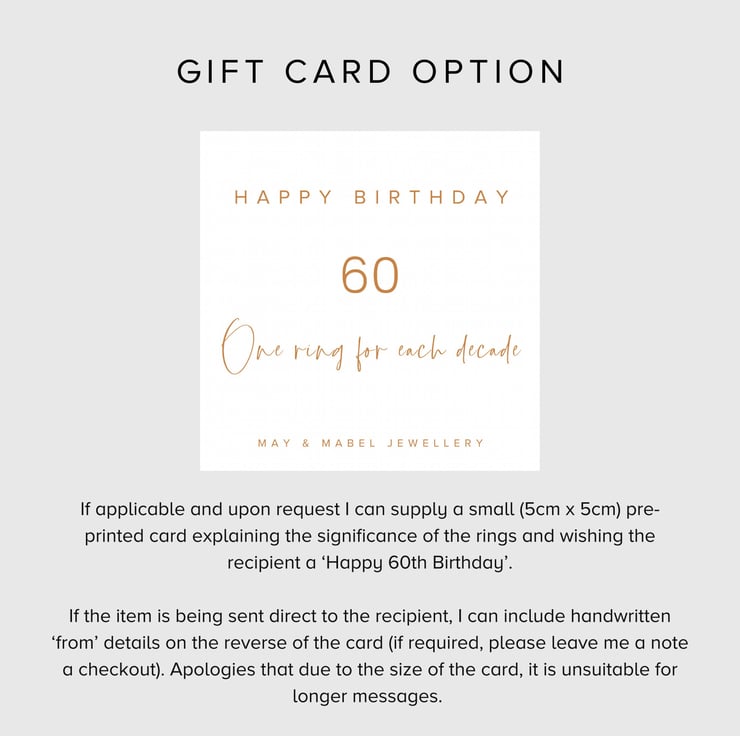 Your item will be packaged in a May & Mabel gift box. Boxes will be anthracite grey or white in colour and are either stickered or embossed with a May & Mabel logo, subject to availability. Enclosed in each box will be an anti-tarnish paper strip to help prevent discolouration.