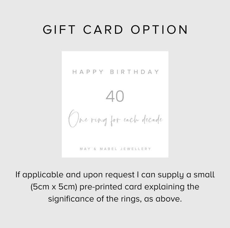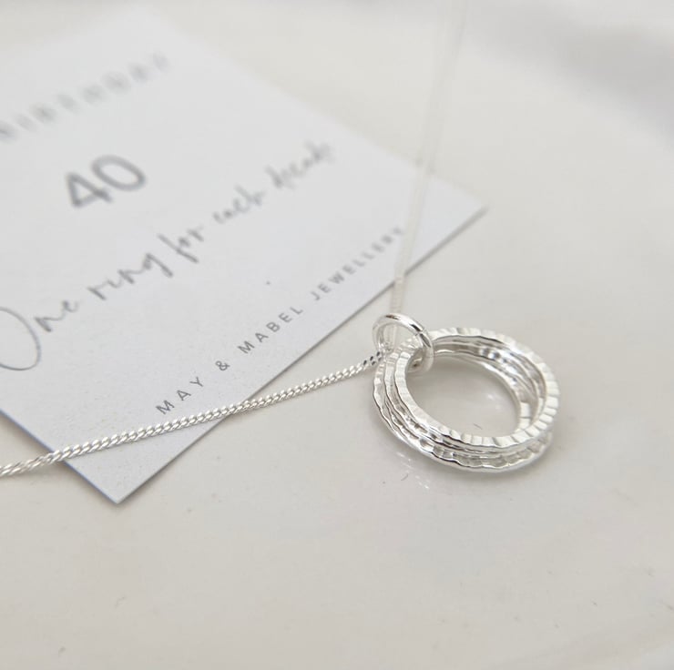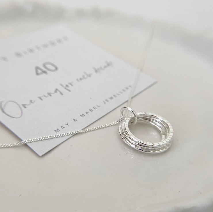 The necklace makes a beautiful gift that could represent a ring for each decade on a milestone birthday, family members, a friendship group or an anniversary.