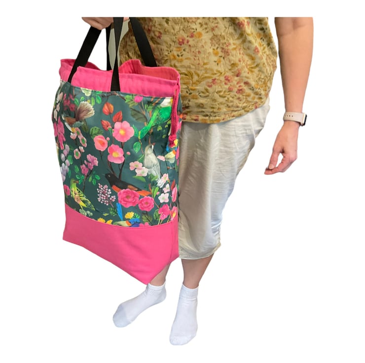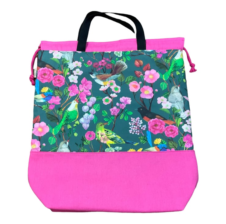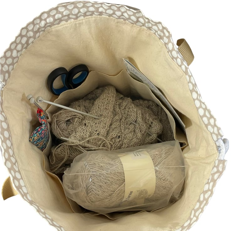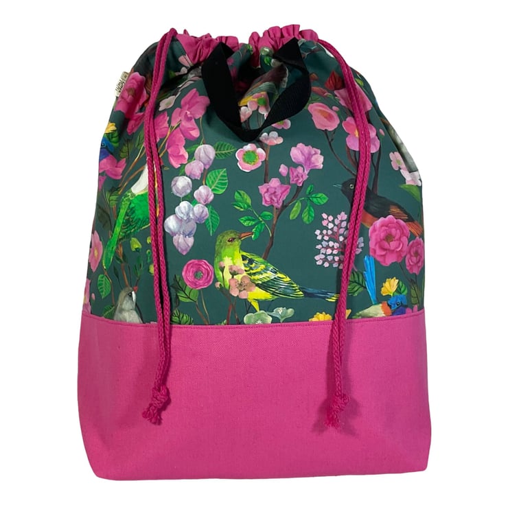 My biggest bag yet, this is huge! I have 1000g of pure wool yarn, my project and all my tools and still theres more room! ( shown in an alternative print,This bag is made mostly in heavier weight fabrics for form and longevity.