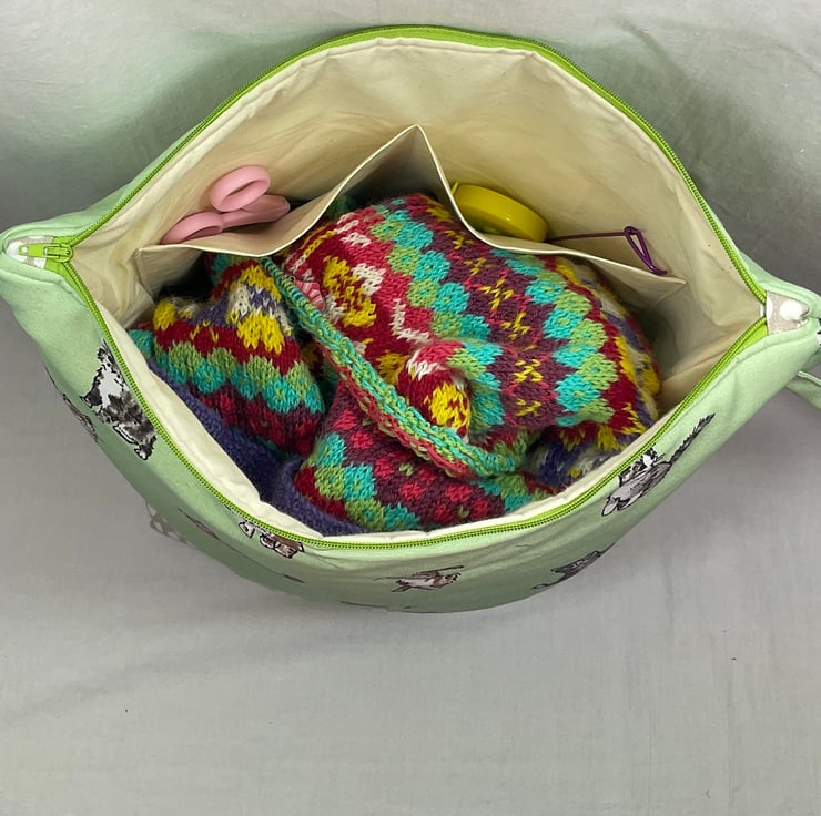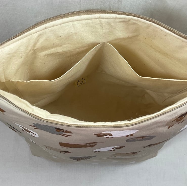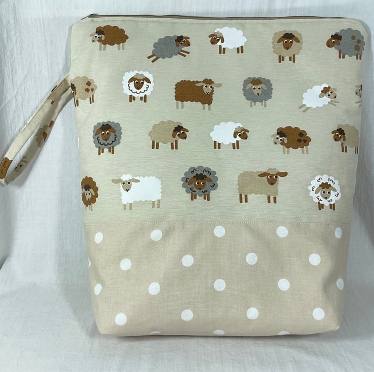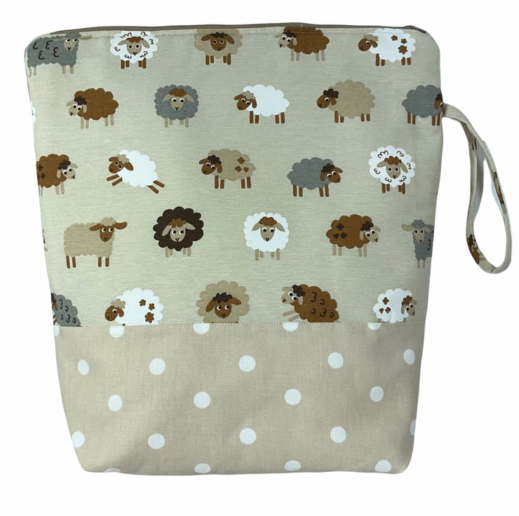 Extra Large zipped knitting pouch bag with sheep, supersized knitters project ba