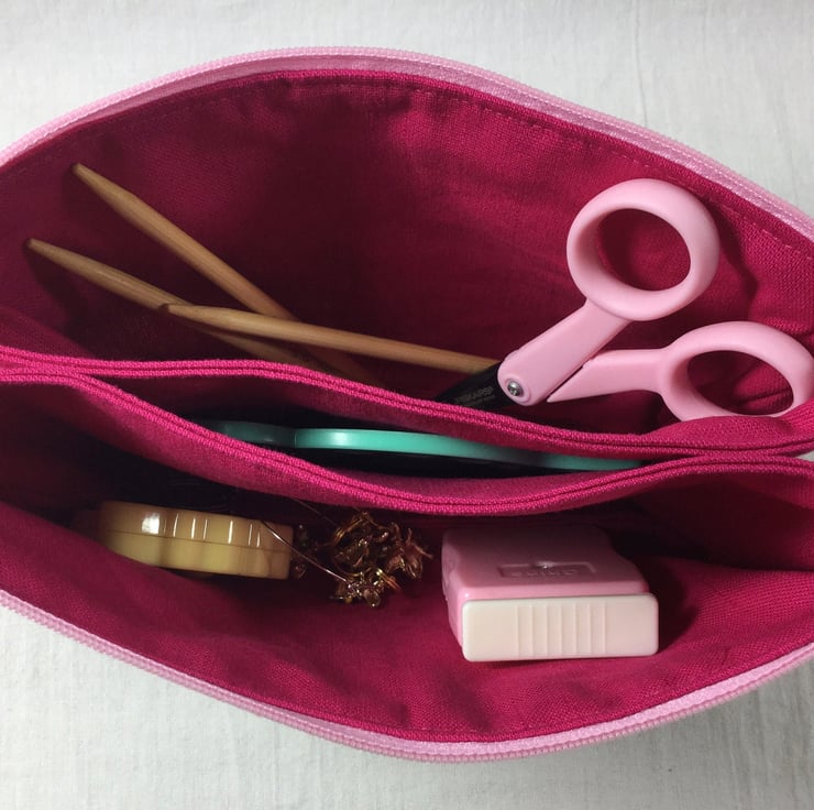 Well, I struggled to place this in one section as it is handy for so many things! I settled on makeup bag, but it would make a perfect craft tools bag ( both shown in an alternative print bag) , pencil case or a handbag organiser.