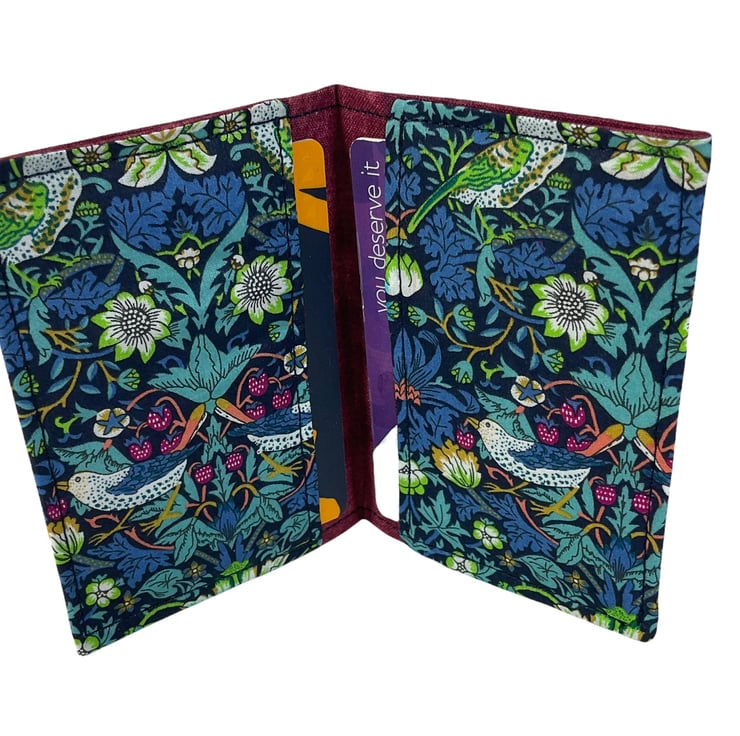 Very handy card wallet, made in beautiful Liberty tana lawn fabrics and fully lined in heavier weight linen look cottons.