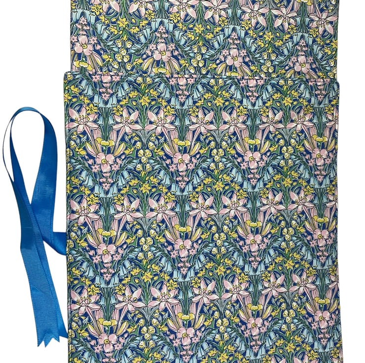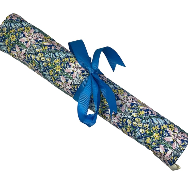 The case is in the prettiest Liberty Lasenby cotton on a royal blue background, this print is Adlington Hall I have paired it with a heavyweight cotton canvas in deep turquoise this adds form and is more hard wearing.