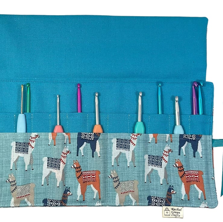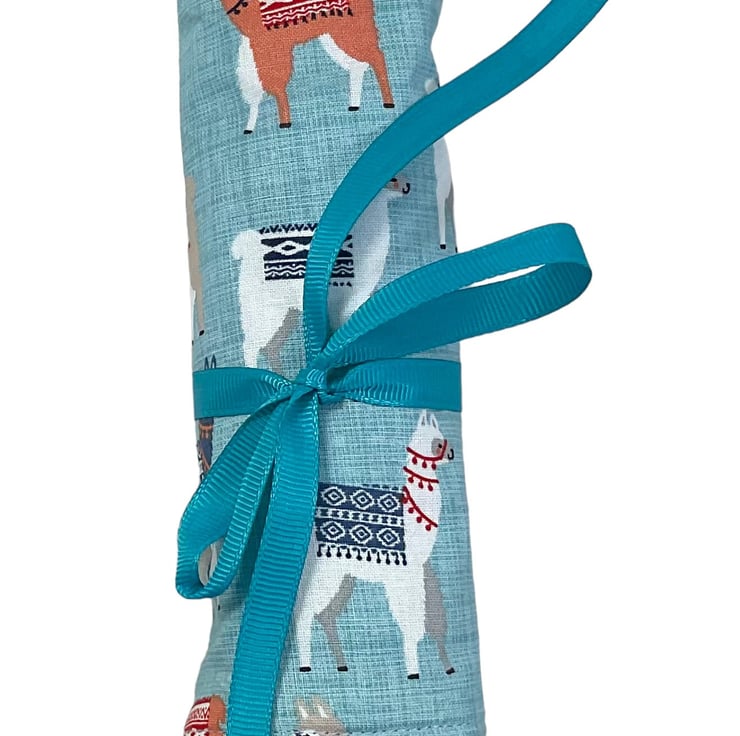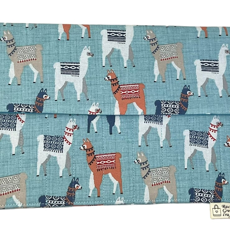 Crochet hook case with llamas, Ergonomic hook organiser, roll up short Dpn case,