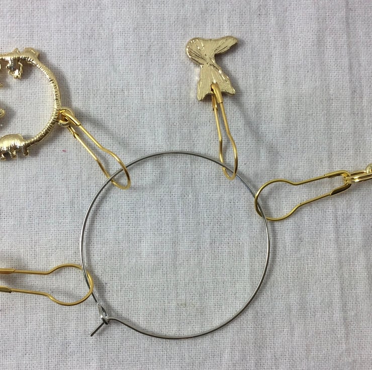 The charms themselves are gold plated as are the locking pins they are attached to. Due to the pins being able to open, these work equally well for knitting and crochet.