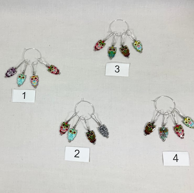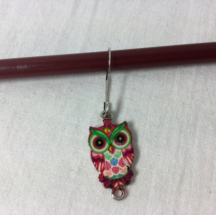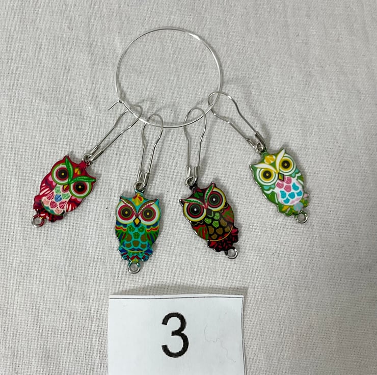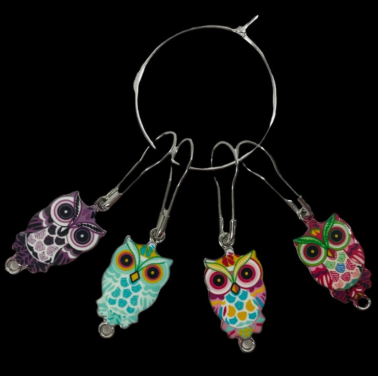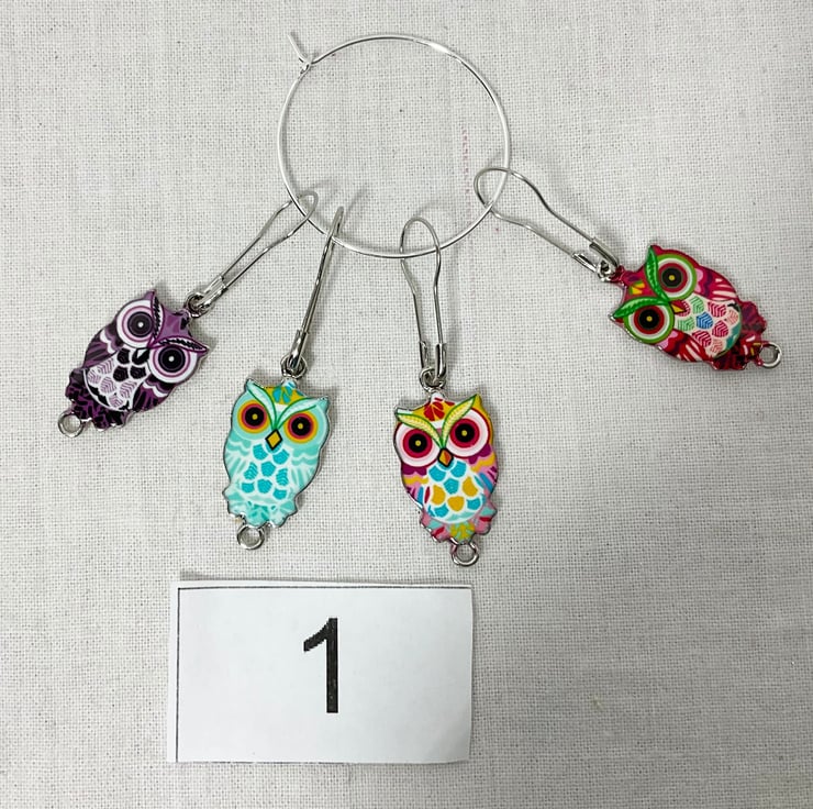 Owl Stitch markers ,enamelled colourful progress charms, knitting markers, lace
