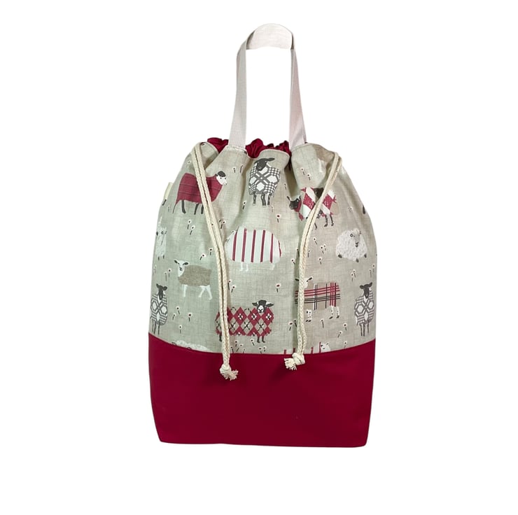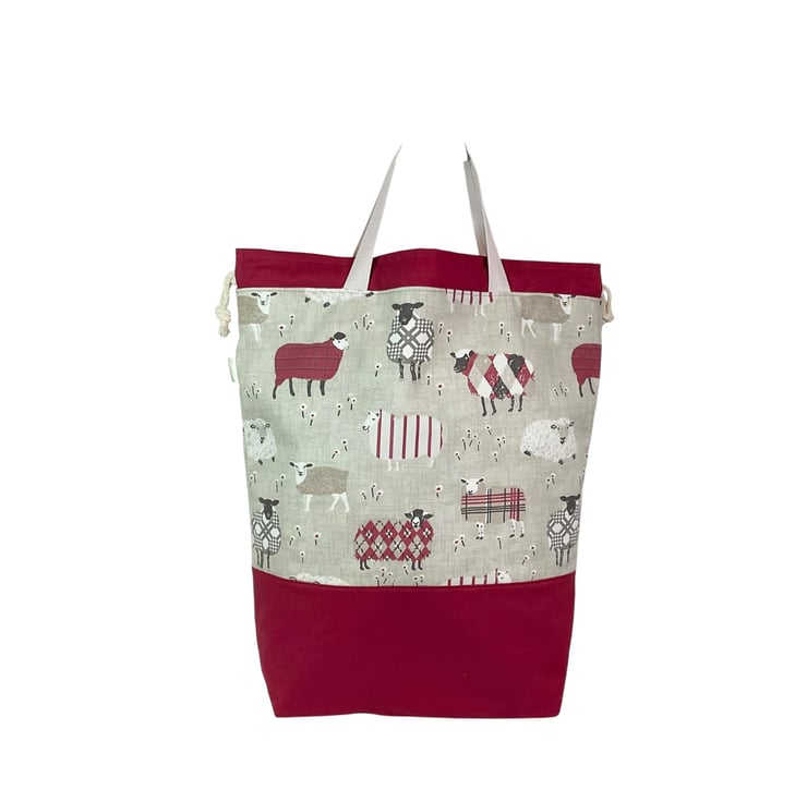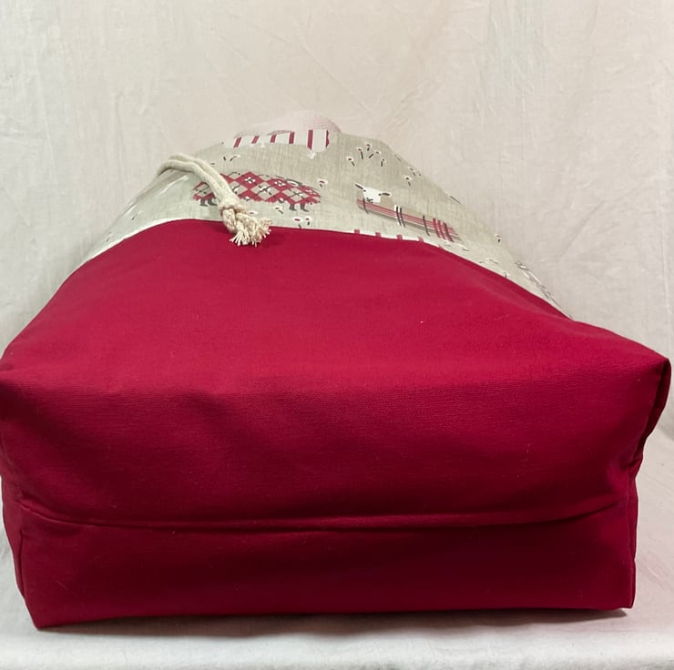 The main fabric is a lovely heavyweight cute red tartan decorative sheep print on a natural beige base ( pattern placement may vary) and I have paired it with a heavyweight wine canvas cotton.