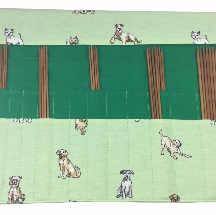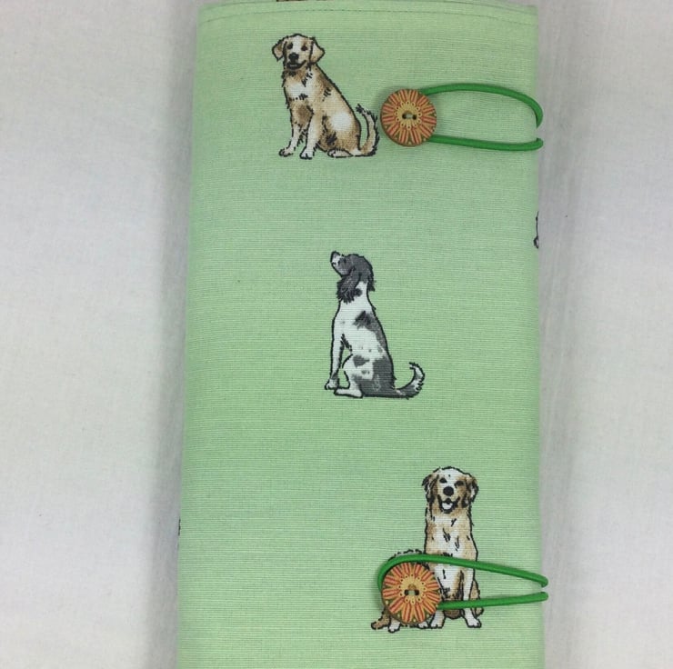 The case and lower needle pocket are made in the dog fabric,and I have chosen to line the case in a Grass green cotton fabric, This is also used for the upper needle pocket.