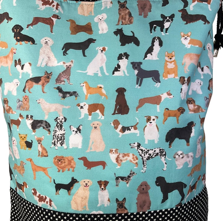 XXL drawstring knitting and project bag with Dog breeds, supersized bag