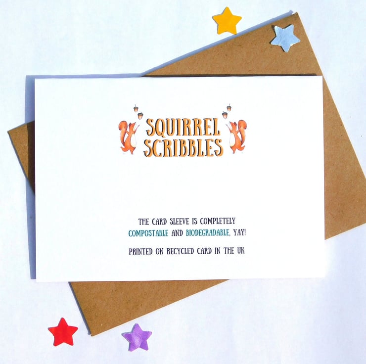 Hello, thank you for visiting SquirrelScribbles! You'll find plenty of punderful cards and cheerful gifts here, all 100% magical, and 0% plastic!
