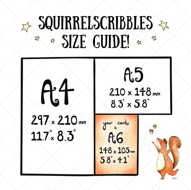 - The card is cute A6 size (148x105mm; 4.1 x 5.8 inches).