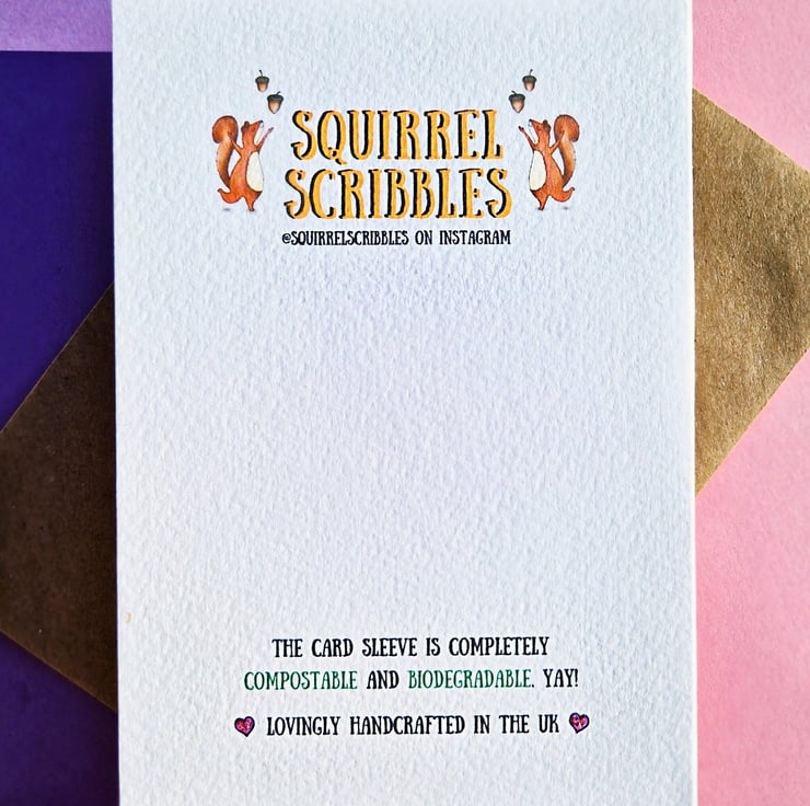 Hello, thank you for visiting SquirrelScribbles! You'll find plenty of punderful cards and cheerful gifts here, all 100% magical, and 0% plastic!