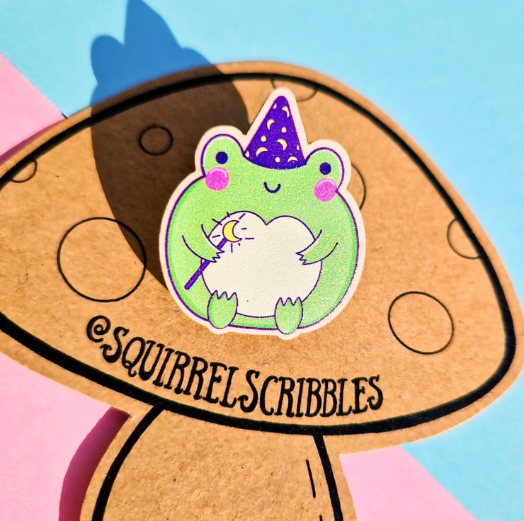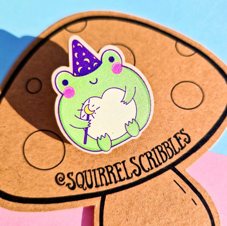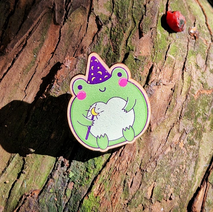 This frog pin is crafted from FSC wood, with a choice of metal or rubber backing. A magical wooden frog pin that makes the perfect gift for birthdays and more!
