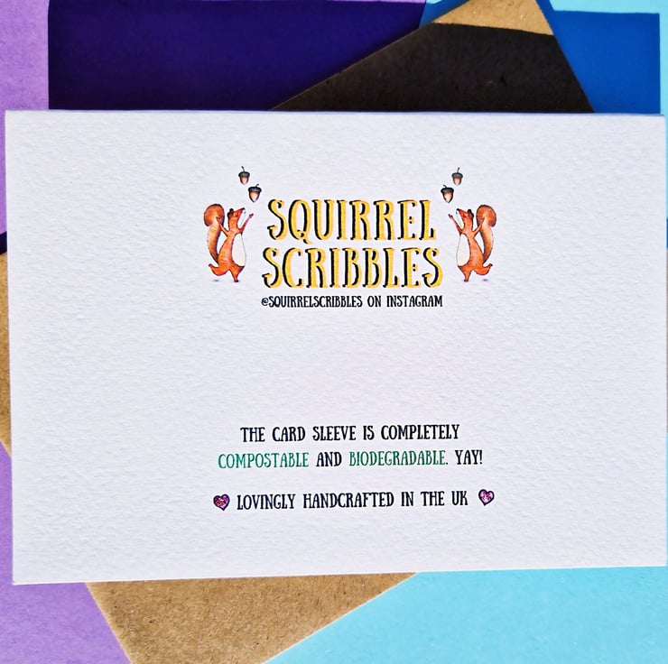 Hello, thank you for visiting SquirrelScribbles! You'll find plenty of punderful cards and cheerful gifts here, all 100% magical, and 0% plastic!