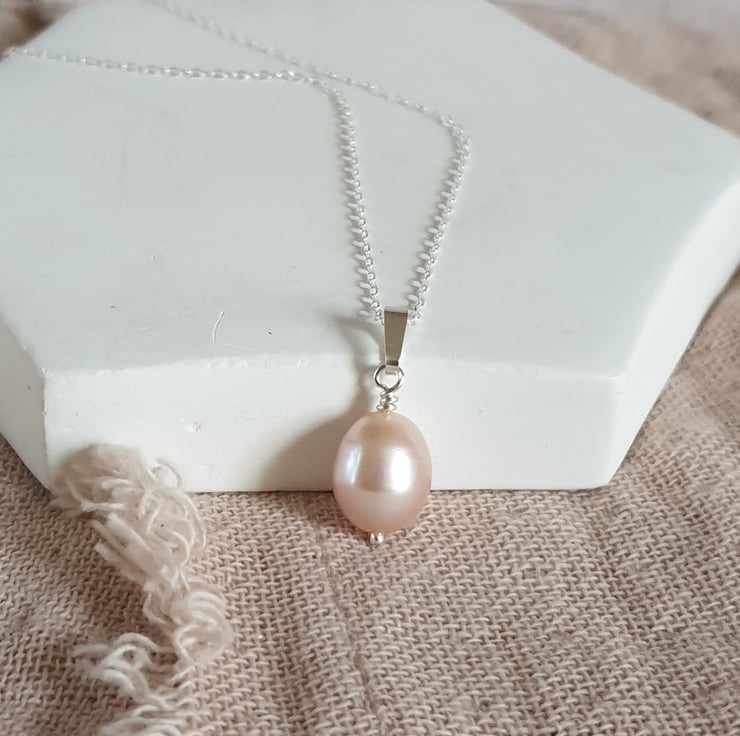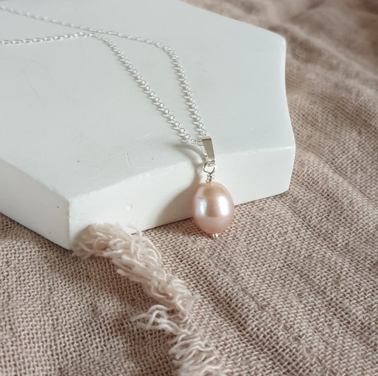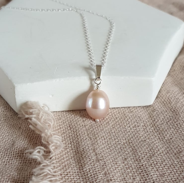 This delicate pink pearl pendant is an ideal bridesmaid gift too.