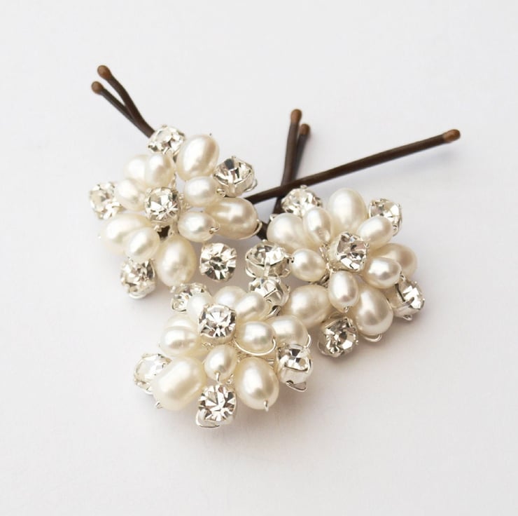 Each pin features real freshwater pearls which symbolise feminine wisdom, innocence, purity and faith making them an welcome additional to any brides wedding day accessories.