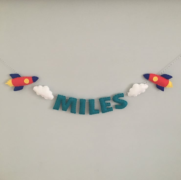 The base price in this listing is for a 3 letter name, with options to select a longer name. These can be made with any length names, in a variety of felt colours, and on any length twine.