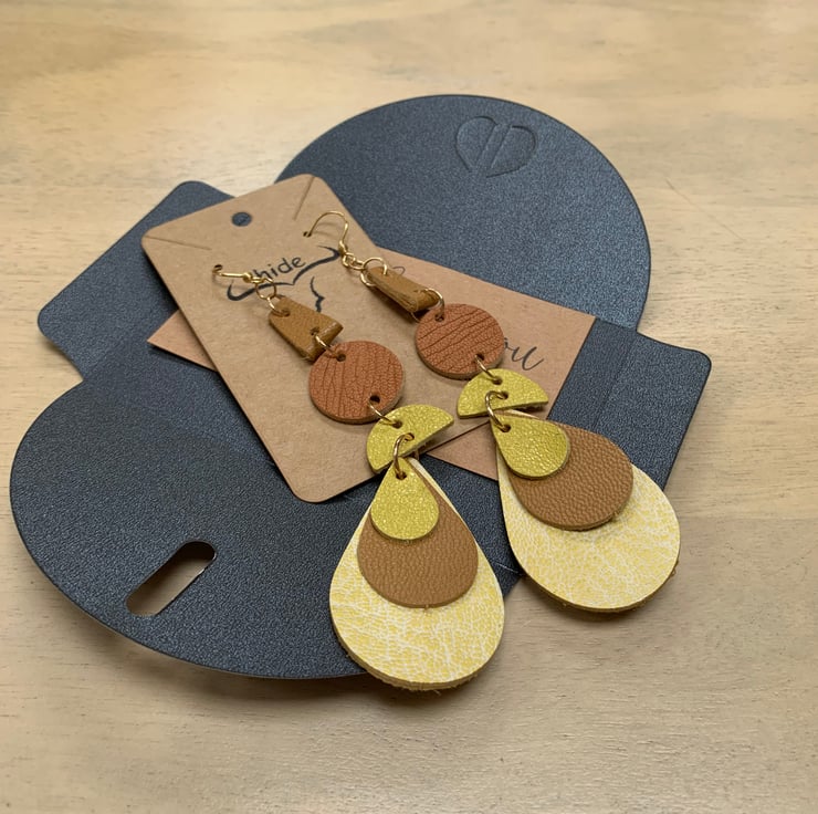 Introducing my new range of handmade statement leather earrings. All are hypoallergenic so are perfect for sensitive skin. They are feather light so you can wear them all day.