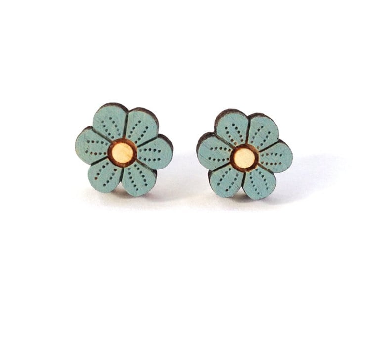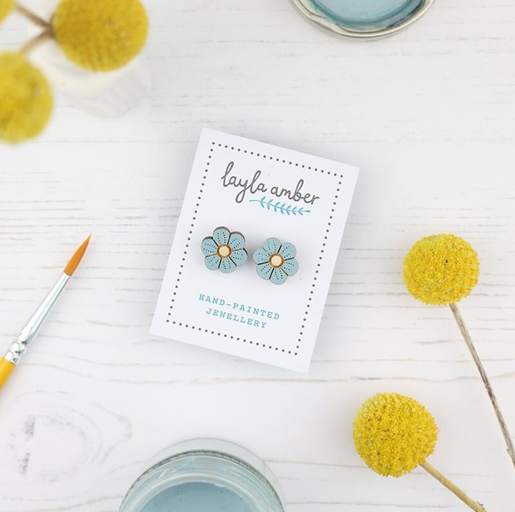 These cute blue flower earrings have been laser cut in sustainable birch plywood and delicately hand-painted, all from my studio on the Suffolk Coast.