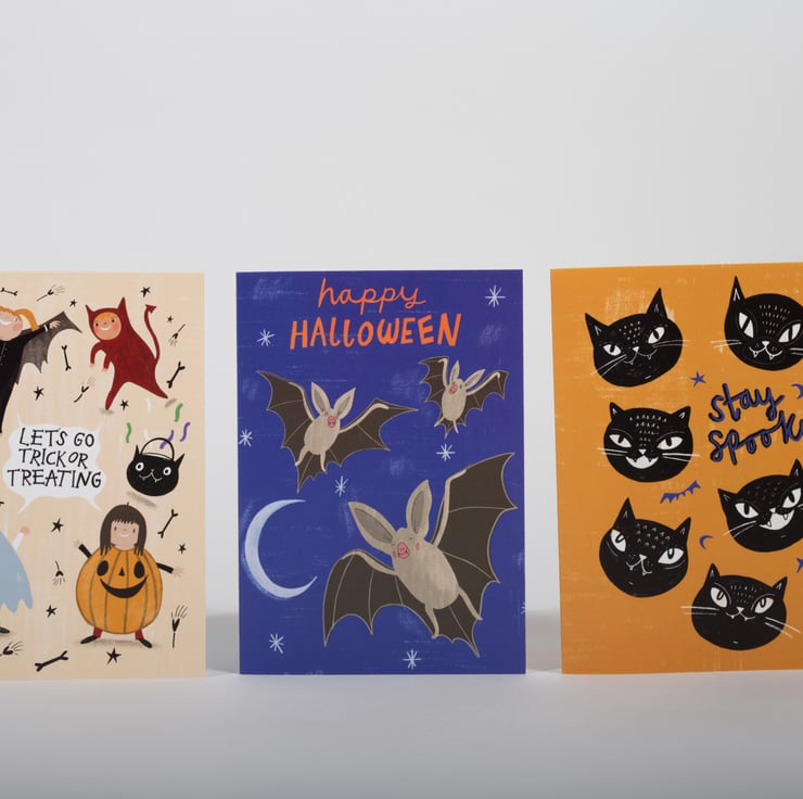 I just LOVE Halloween and the spooky season, the cosy nights, the colours and the imagery and have always loved drawing Halloween-style characters. To celebrate my favourite season, I wanted to send some cards to my fellow spooky lovers and realised that there wasn't a huge selection - so I decided to design and make my own and they have been so popular ever since!