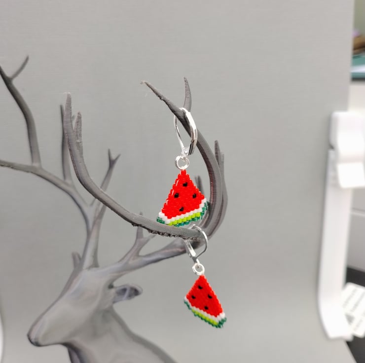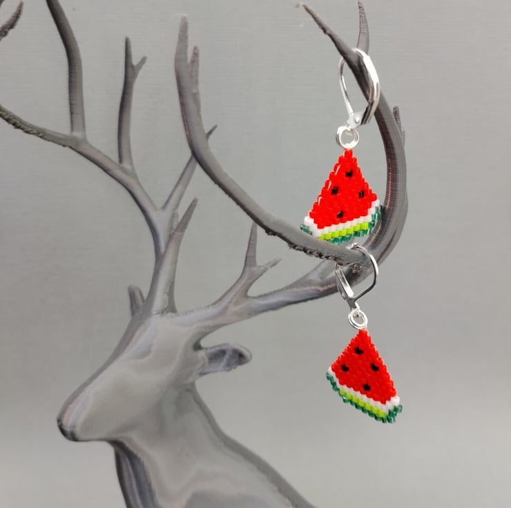 Silver plated water melon earrings,was fun making these made me smile. 2cm drop on secure ear finding. Will come gift packaged