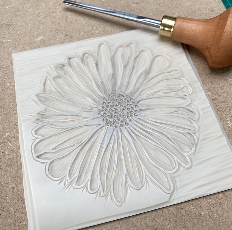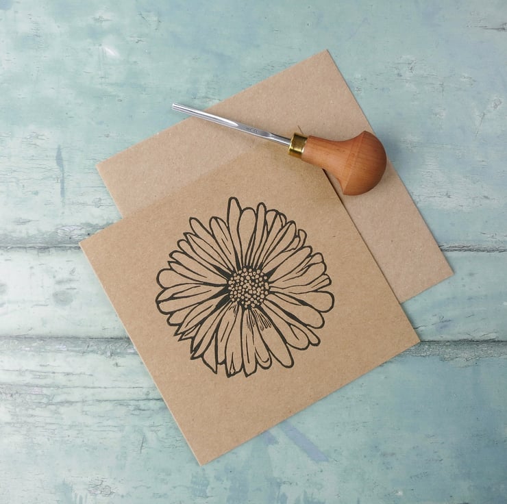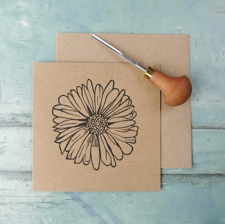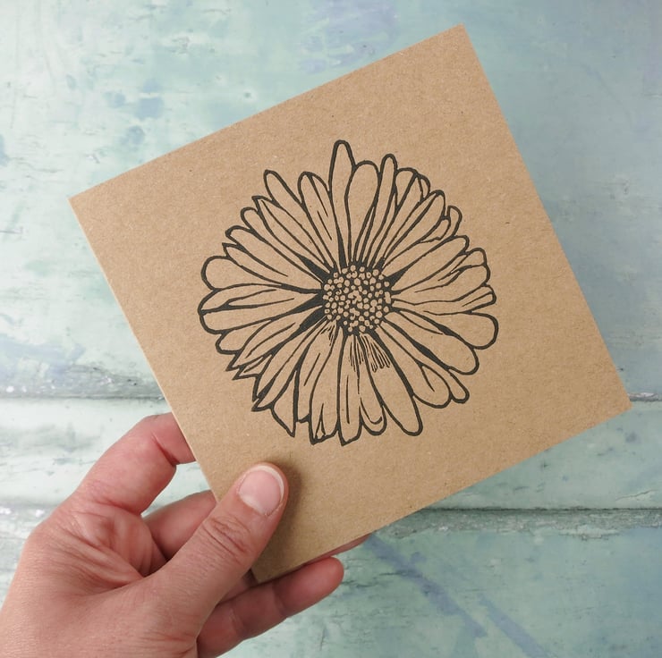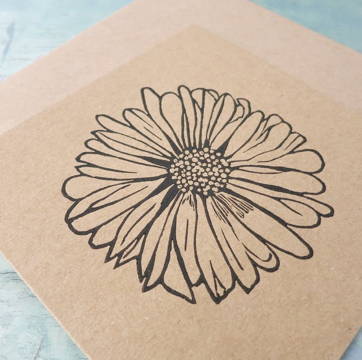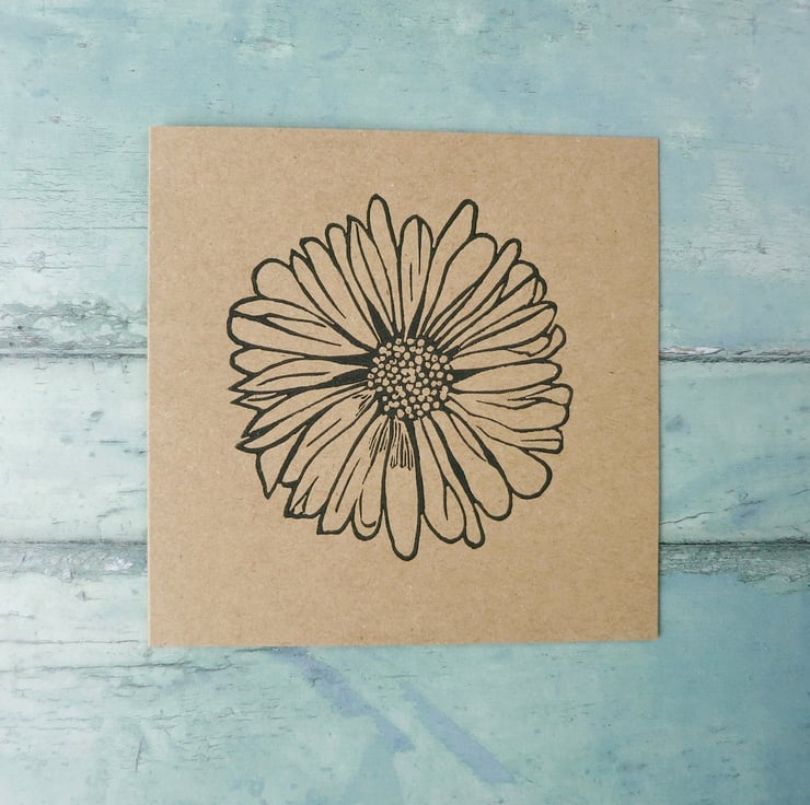 Original Lino print of a Daisy. Hand printed on recycled Kraft card using water based ink.