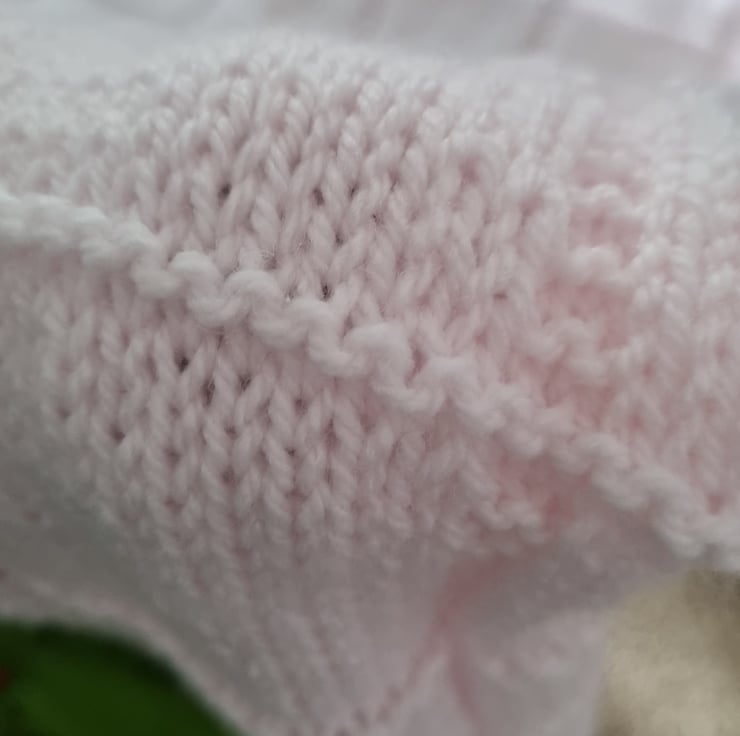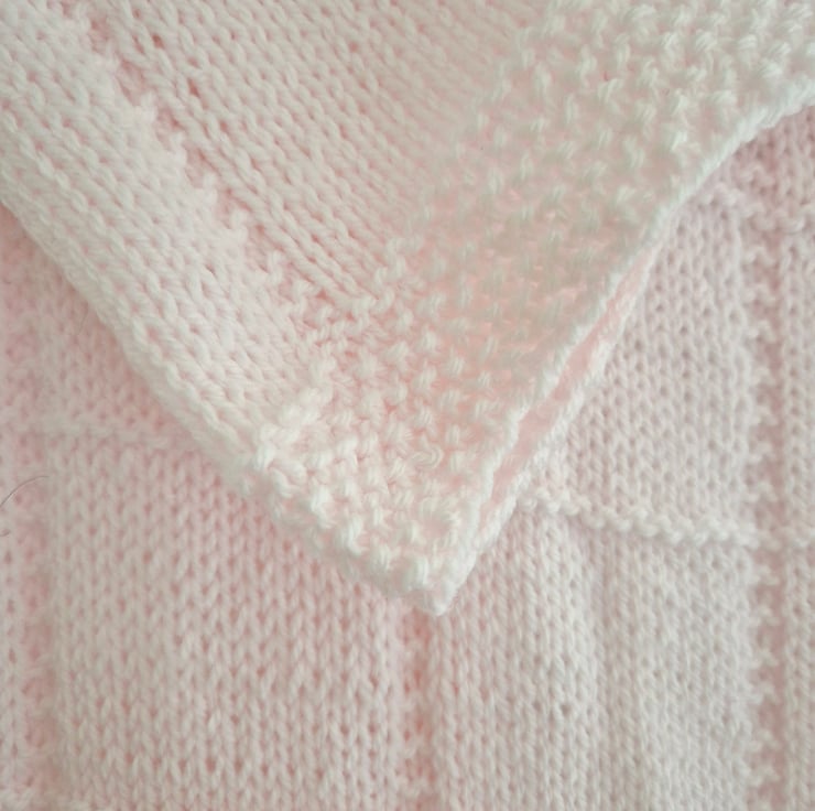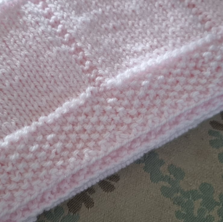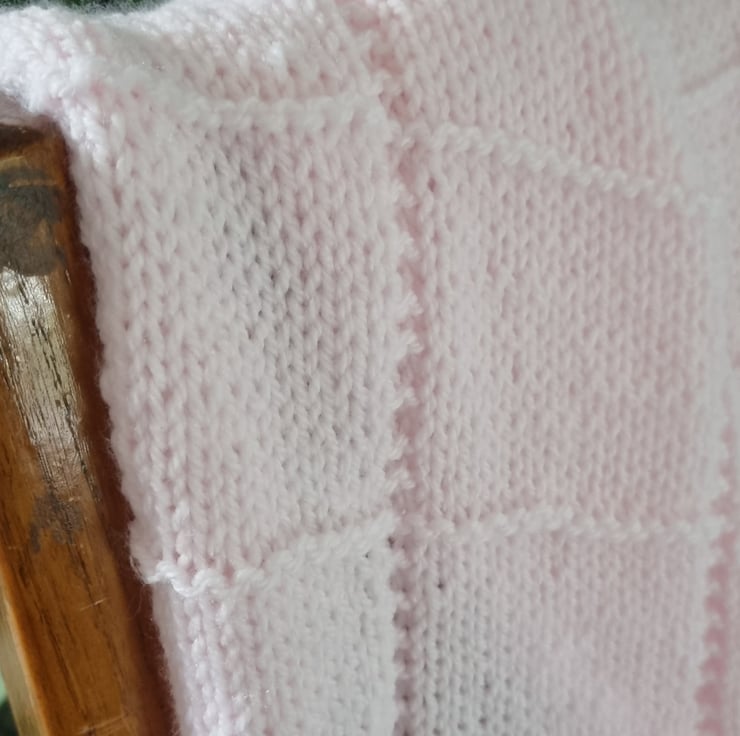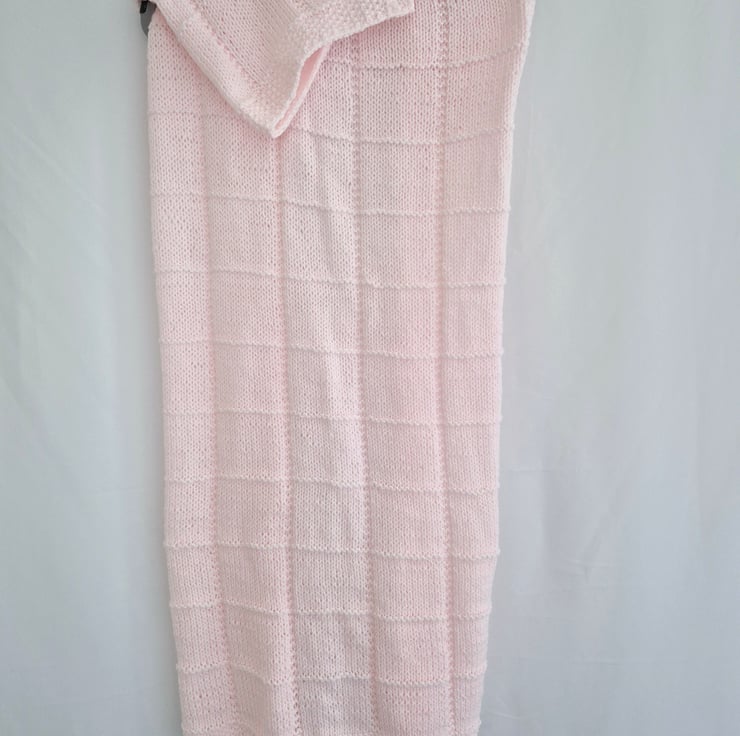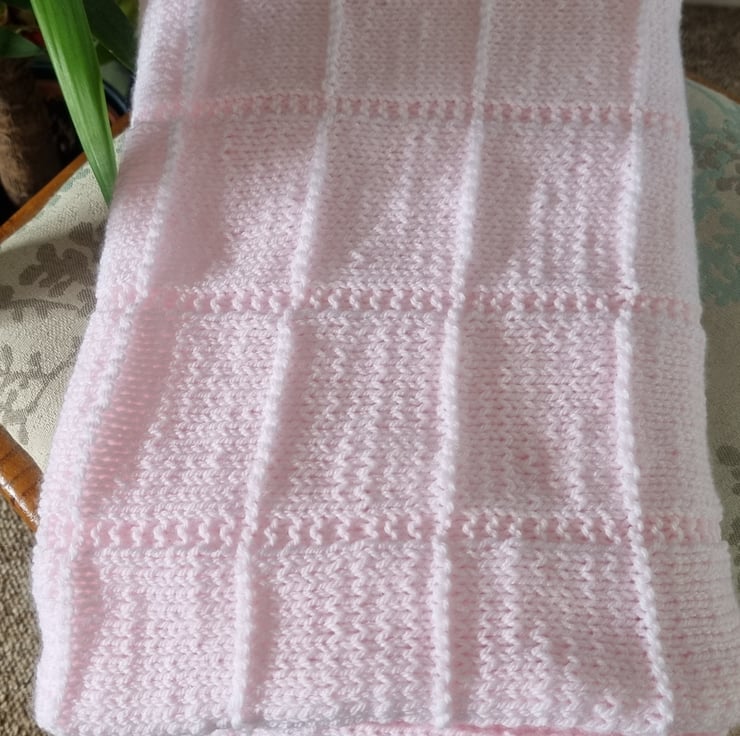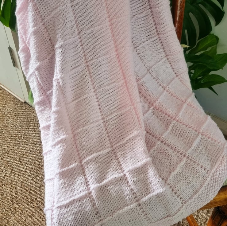 This gorgeous handmade knitted blanket, in a baby pink colour, is super soft. This would make an ideal gift for a newborn baby. a baby shower present or a christening gift.