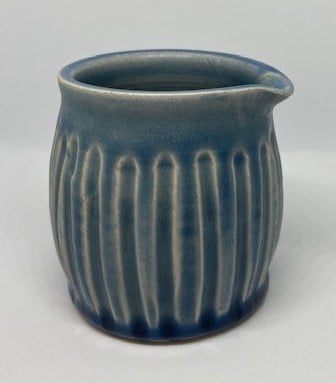 These shapes are satisfying to throw and I love fluting pots. This mid-blue glaze has pooled very nicely at the base of the pot and it breaks over the texture, giving interest to the pot.
