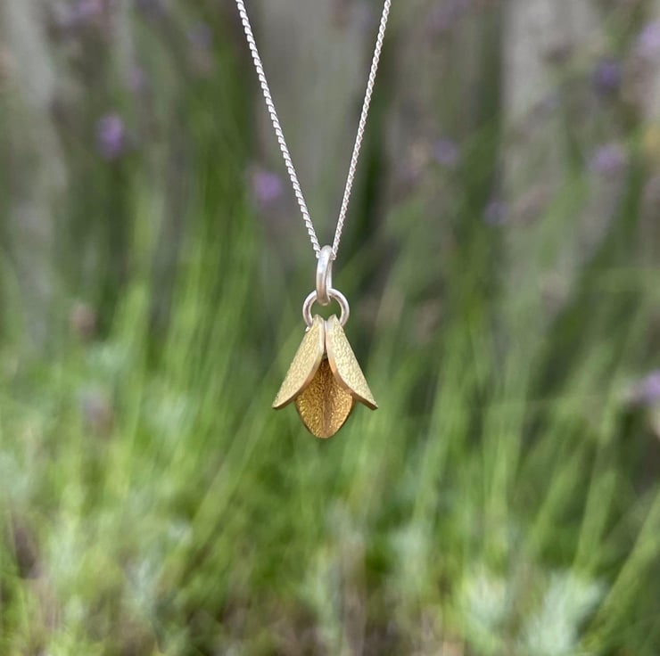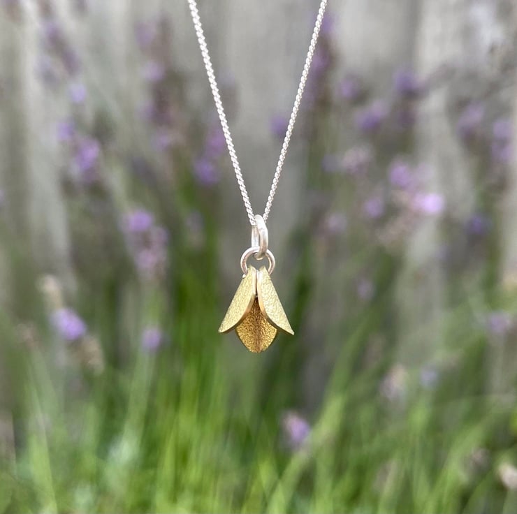 The bluebell charm is hung on a sterling silver chain, crafted in either a 16 or 18inch length and will arrive in a Curious Magpie jewellery box.