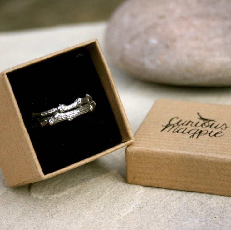 Every ring is created from a different pair of twigs meaning that every single ring will be completely unique and one-of-a-kind.