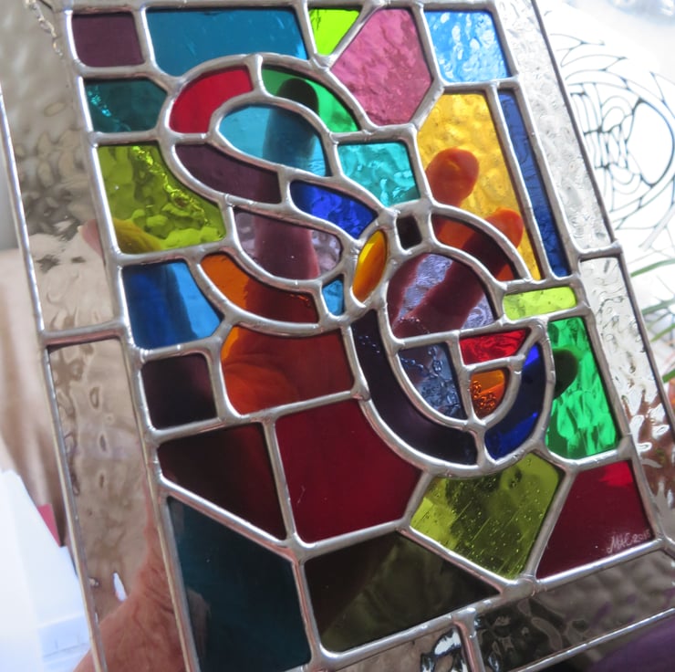 Just message me after checkout with the two letters you require. I will do the rest, creating a beautiful stained glass hanging panel, just like those shown in the photos ( the final photo shows my 'One Letter Panel' also available in my shop)