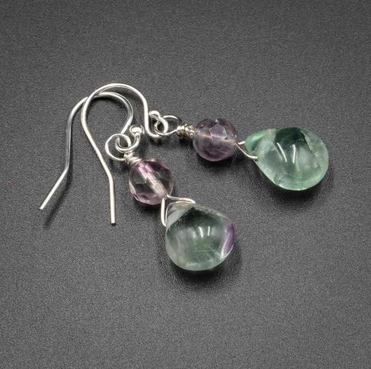 Fluorite sterling silver teardrop gemstone earrings, Pisces gift