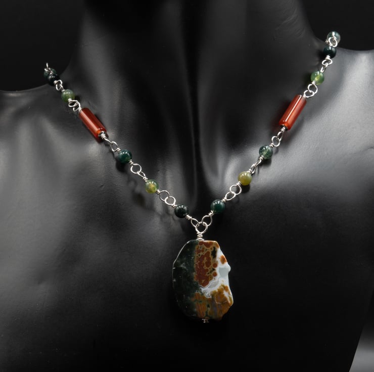 A striped agate and Carnelian necklace is shown in picture 6 - 8.