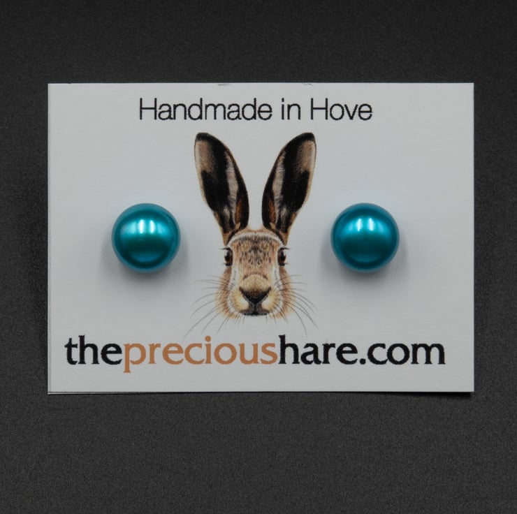 10mm turquoise pearls and silver plated stud earrings with a butterfly back to secure.